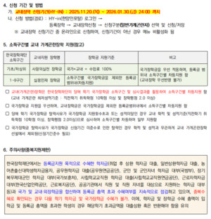한국장학재단이 2026학년도 1학기 1차 국가장학금 신청을 실시한다. 신청 기간은 20일(목) 오전 9시부터 26일(금) 오후 6시까지이다. 대상자는 ▲신입생(고3, 재수생 등 입학예정자) ▲편입생 ▲재입학생 ▲복학생 등 모든 대학생이다.재학생은 1차 신청이 원칙이며 2차 신청 시 학생신청 및 소득산정 완료 후 학사재단정보 심사 단계에서 재단거절의 형태로 탈락될 수 있으니 유의해야 한다. 다만 재학 중 2회에 한해 구제신청이 자동 적용될 수 있다.신청은 전자서명수단(공동인증서, 금융인증서, 간편인증)을 구비해 한국장학재단 누리집 및