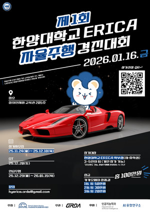 한양대 지능로봇사업단이 제1회 한양대 ERICA 자율주행 경진대회(이하 대회)를 개최한다. 이번 대회는 스케일카(RC카)를 활용, 자율주행 소프트웨어를 개발하고 주행 성능을 평가하는 행사다. 참가자는 자율주행 기초 교육부터 실습까지 경험할 수 있으며, 직접 개발 과정을 체험할 수 있는 기회를 얻게 된다.이번 대회는 자율주행에 관심 있는 한양대 ERICA 재·휴학생이라면 누구나 참여할 수 있다. 참가자 모집은 오는 12월 18일까지 진행되며, 신청 방법은 구글폼(바로가기)에 접속해 작성 후 제출하면 된다. 진출 여부는 개별 연락으로