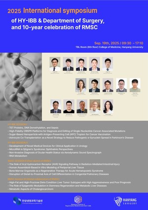 오는 9월 19일(금), 한양대학교 의료원은 의과대학 본관에서 '2025 한양대생명과학기술원(HY-IBB)과 외과학교실 국제 심포지엄 및 재생의학 줄기세포연구소(RMSC) 10주년 기념행사'를 개최한다. 이번 행사는 국내외 석학이 참여하여 재생의학과 줄기세포 연구의 지난 10년 성과를 돌아보고, 국제적 연구 협력의 지평을 넓히는 자리가 될 예정이다.이번 행사의 'HY-IBB 1' 세션은 한양대류마티스병원 성윤경 교수와 성균관대 김요한 교수가 좌장을 맡아 진행된다. ▲TET 단백질과 DNA 탈메틸화 및 패혈증(한양대병원 조용일 교수)
