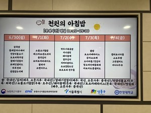“학생들이 좋은 걸 먹는 건 당연하다고 생각해요. 6천 원짜리 식사를 천 원에 제공하는 이유입니다.”한양대 학생식당에서는 지난 3월부터 매일 아침, 단돈 ‘천 원’에 든든한 한 끼를 제공하고 있다. 운영 초기인 2023년에는 시험 기간 한정 5일짜리 행사로 기획됐으나, 학생들의 뜨거운 반응에 힘입어 지난해에는 2주간으로 확대됐다. 이후 올해부터는 정규 프로그램으로 자리 잡았다. 아침밥은 매주 월요일부터 금요일, 오전 8시 20분부터 9시까지 학생복지관 학생식당에서 제공된다. 천 원으로 6천 원짜리 한 끼, “모두의 손으로 완성된 아