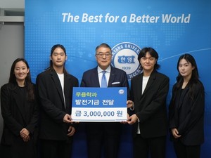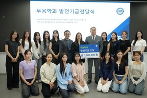 지난 16일, 한양대학교 서울캠퍼스 신본관 6층 H.E.A.T룸에서 무용학과 발전기금 전달식이 열렸다.이날 행사에는 최중섭 대외협력처장, 이성노 예술·체육대학장, 서연수 무용학과 교수 등이 참석했다.최중섭 대외협력처장은 "이 상금을 받기까지 학생 여러분의 많은 노력이 있었을텐데, 이렇게 귀중한 상금을 학교에 기부해 주어 감사하다"며 "서연수 교수님께서도 학생들을 지도하느라 애쓰셨다. 학교 역시 학생들이 더 좋은 환경에서 연습하고 성장할 수 있도록 지속적으로 지원하겠다"고 감사의 뜻을 전했다. 이에 서연수 교수는 "학생들에게 '더'라