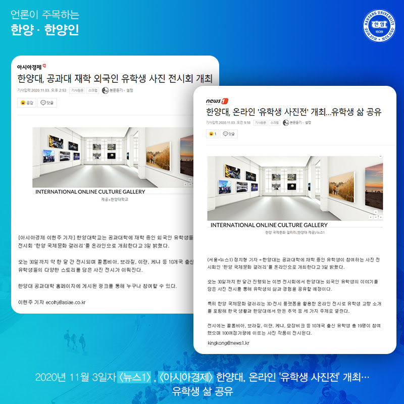 6. 국내대학으로서는 처음으로 우리대학에서 개최한 온라인 유학생 사진전에 대한 내용이 소개됐습니다.