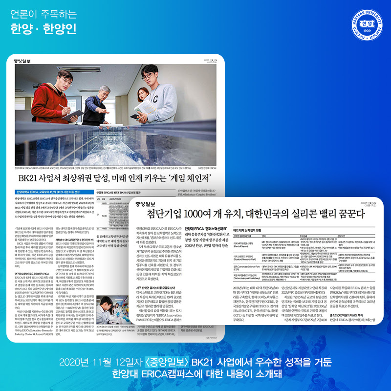 2. BK21 4단계 사업에서 우수한 성적을 거둔 ERICA캠퍼스 관련 내용이 소개됐습니다.