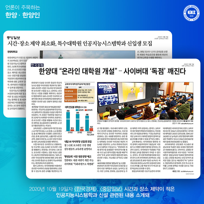 최근 한 달간 언론을 통해 만날 수 있었던 한양대, 한양인의 모습을 모아서 소개합니다.