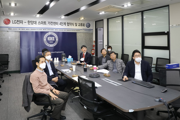코로나19 속, LG전자와 한양대 스마트가전센터의 4단계 협약식 및 교류회가 지난 11일 한양대에서 진행됐다. 한양대 공과대학은 지난 11년부터 LG전자와 스마트가전센터 협약을 맺어 다양한 산학협력을 진행 중이다. 공과대학 대외부학장 송시몬 기계공학부 교수는 “꾸준히 산학협력을 진행해 온 사례가 흔치 않다”며 “많은 경제적, 사회적 어려움에도 불구하고 10년 넘게 산학 협력 관계를 지속한 것은 큰 의미가 있다”고 말했다.