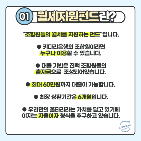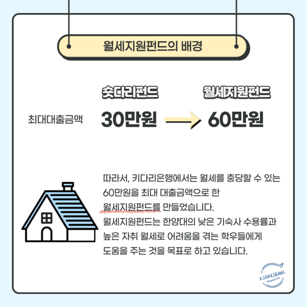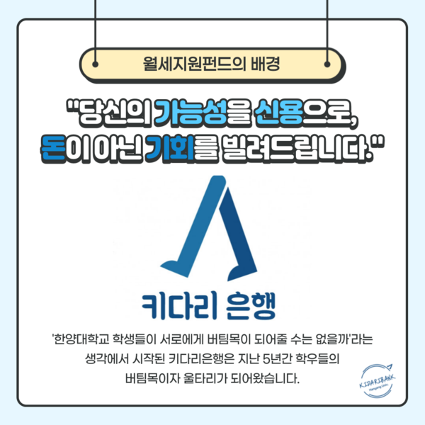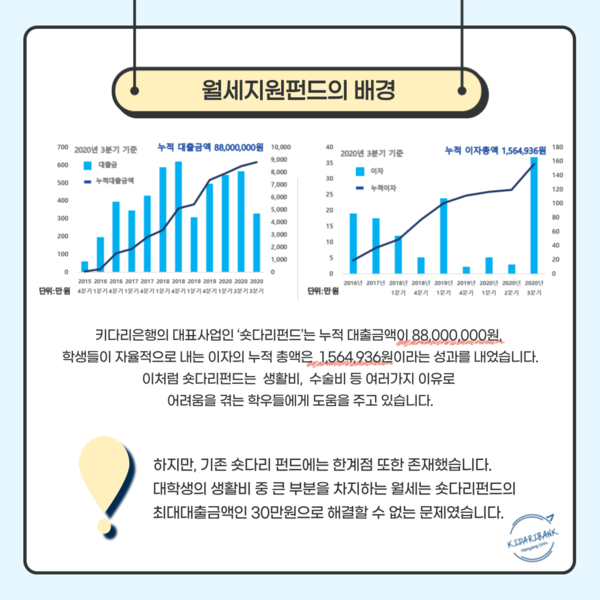 학생들이 자발적으로 운영하는 대학생 자조금융협동조합 '키다르은행'에서 학생들을 위한 새로운 펀드를 기획하였습니다.