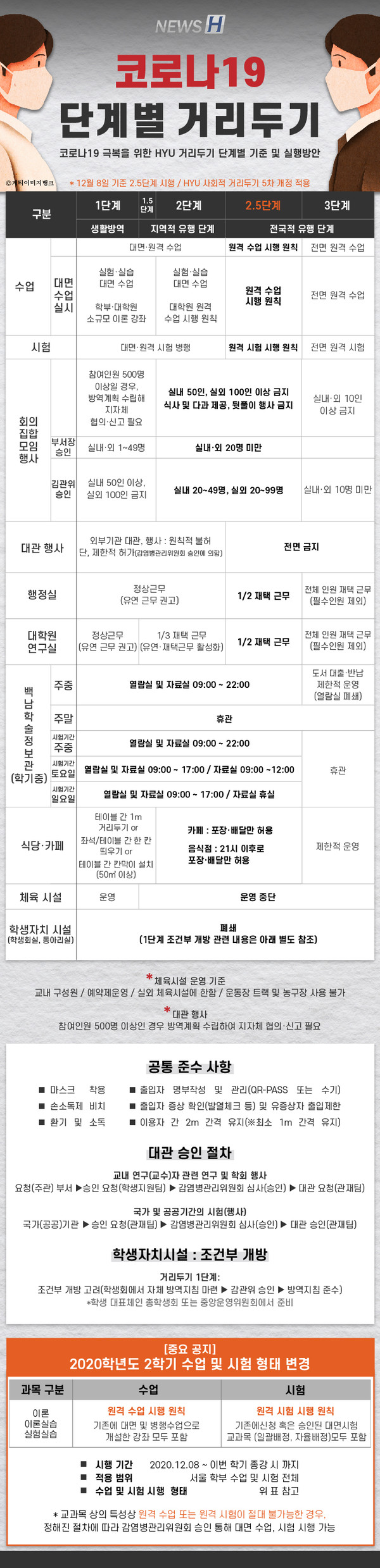 사회적 거리두기 2.5단계… 한양대의 거리두기 실행방안은?