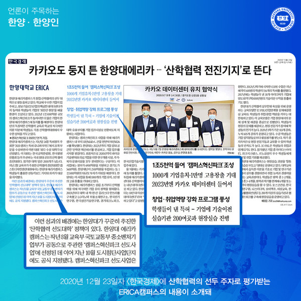 [언론 속 한양] 카카오도 둥지 튼 한양대 에리카...산학협력 전진기지로 뜬다 등(한국경제 외)