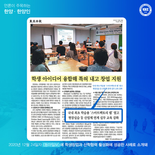 1. 산학협력의 선두주자로 평가받는 우리대학의 내용이 소개됐습니다.