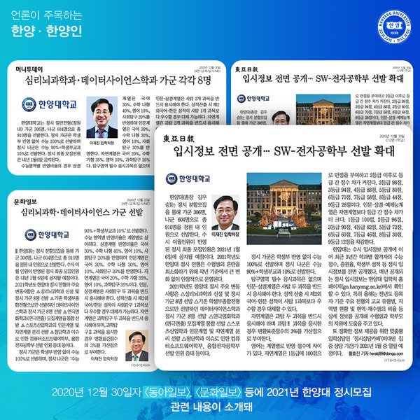 5. 2021학년도 한양대 정시모집과 관련된 내용이 소개됐습니다.