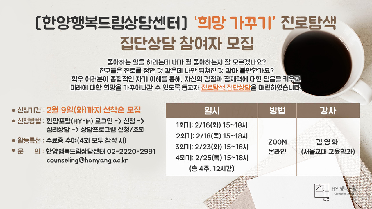 게시기간 : 2021.01.25~2021.02.07 뉴스H newsh@hanyang.ac.kr 다른기사 보기 저작권자 © 뉴스H 무단전재 및 재배포 금지 당신만 안 본 뉴스 [포토스토리] "AI 시대 해답은 브랜딩", 오세훈 서울시장의 경영학 특강 현장 Into the Creation 2025, 창작자들의 꿈에 날개를 이찬규 학생, 사이버·우주 융합연구로 2025 사이버안보논문공모전 대상 수상 한양대, '2026 QS 지속가능성 순위' 세계 161위, 국내 4위 기록 해커톤에서 인턴십까지, 현대차 사내 스타트업에 다녀오다 [창업지원단 인턴십 경험기] [포토스토리] 한양 속에 사회혁신을 품다, SSIR 먼슬리 콜로키움 현장 행복은 좋은 경험의 ‘빈도’에서, 서은국 교수와 함께한 한양인의 힐링콘서트 현장 2025 중앙일보 대학평가 서울 3위, ERICA 13위 댓글삭제 삭제한 댓글은 다시 복구할 수 없습니다. 그래도 삭제하시겠습니까? 비밀번호 닫기 기사 댓글 0 댓글 접기 로그인 후 이용 가능합니다. 댓글 내용입력 비회원 로그인 이름 비밀번호 댓글 내용입력 댓글쓰기 계정을 선택하시면 로그인·계정인증을 통해 댓글을 남기실 수 있습니다. 회원 로그인 비회원 글쓰기 이름 비밀번호 자동등록방지 로그인 옵션 창닫기 기획기사 [포토스토리] "AI 시대 해답은 브랜딩", 오세훈 서울시장의 경영학 특강 현장 Into the Creation 2025, 창작자들의 꿈에 날개를 해커톤에서 인턴십까지, 현대차 사내 스타트업에 다녀오다 [창업지원단 인턴십 경험기] [포토스토리] 한양 속에 사회혁신을 품다, SSIR 먼슬리 콜로키움 현장 행복은 좋은 경험의 ‘빈도’에서, 서은국 교수와 함께한 한양인의 힐링콘서트 현장 [카드뉴스] '한양대학교 SDGs? 알고 보니 내 일상 속에 있었다!' 1편