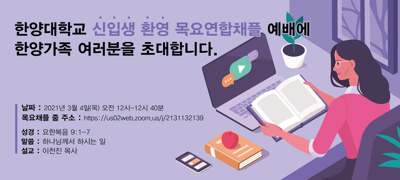 게시기간 : 2021.03.02 ~ 2021.03.10 관련기사 한양대에도 채플이 있다? 미디어보드 newsh@hanyang.ac.kr 다른기사 보기 저작권자 © 뉴스H 무단전재 및 재배포 금지 당신만 안 본 뉴스 [포토스토리] "AI 시대 해답은 브랜딩", 오세훈 서울시장의 경영학 특강 현장 Into the Creation 2025, 창작자들의 꿈에 날개를 이찬규 학생, 사이버·우주 융합연구로 2025 사이버안보논문공모전 대상 수상 한양대, '2026 QS 지속가능성 순위' 세계 161위, 국내 4위 기록 해커톤에서 인턴십까지, 현대차 사내 스타트업에 다녀오다 [창업지원단 인턴십 경험기] [포토스토리] 한양 속에 사회혁신을 품다, SSIR 먼슬리 콜로키움 현장 행복은 좋은 경험의 ‘빈도’에서, 서은국 교수와 함께한 한양인의 힐링콘서트 현장 [포토스토리] "AI 시대 해답은 브랜딩", 오세훈 서울시장의 경영학 특강 현장 댓글삭제 삭제한 댓글은 다시 복구할 수 없습니다. 그래도 삭제하시겠습니까? 비밀번호 닫기 기사 댓글 0 댓글 접기 로그인 후 이용 가능합니다. 댓글 내용입력 비회원 로그인 이름 비밀번호 댓글 내용입력 댓글쓰기 계정을 선택하시면 로그인·계정인증을 통해 댓글을 남기실 수 있습니다. 회원 로그인 비회원 글쓰기 이름 비밀번호 자동등록방지 로그인 옵션 창닫기 기획기사 [포토스토리] "AI 시대 해답은 브랜딩", 오세훈 서울시장의 경영학 특강 현장 Into the Creation 2025, 창작자들의 꿈에 날개를 해커톤에서 인턴십까지, 현대차 사내 스타트업에 다녀오다 [창업지원단 인턴십 경험기] [포토스토리] 한양 속에 사회혁신을 품다, SSIR 먼슬리 콜로키움 현장 행복은 좋은 경험의 ‘빈도’에서, 서은국 교수와 함께한 한양인의 힐링콘서트 현장 [카드뉴스] '한양대학교 SDGs? 알고 보니 내 일상 속에 있었다!' 1편