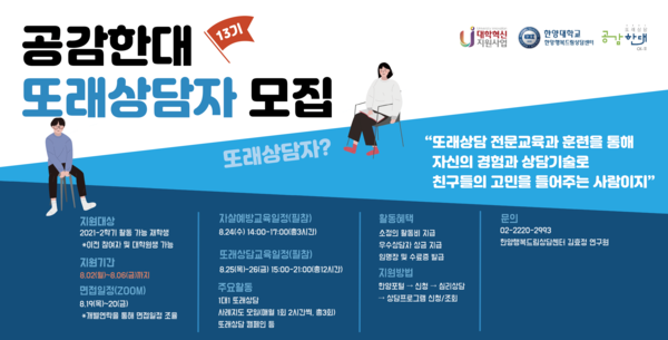 게시 기간 : 2021.07.28 ~ 2021.08.06 관련기사 한양인의 지친 마음을 치유하다, ERICA캠퍼스 한양행복드림상담센터 미디어보드 newsh@hanyang.ac.kr 다른기사 보기 저작권자 © 뉴스H 무단전재 및 재배포 금지 당신만 안 본 뉴스 [포토스토리] "AI 시대 해답은 브랜딩", 오세훈 서울시장의 경영학 특강 현장 Into the Creation 2025, 창작자들의 꿈에 날개를 이찬규 학생, 사이버·우주 융합연구로 2025 사이버안보논문공모전 대상 수상 한양대, '2026 QS 지속가능성 순위' 세계 161위, 국내 4위 기록 해커톤에서 인턴십까지, 현대차 사내 스타트업에 다녀오다 [창업지원단 인턴십 경험기] [포토스토리] 한양 속에 사회혁신을 품다, SSIR 먼슬리 콜로키움 현장 행복은 좋은 경험의 ‘빈도’에서, 서은국 교수와 함께한 한양인의 힐링콘서트 현장 [포토스토리] "AI 시대 해답은 브랜딩", 오세훈 서울시장의 경영학 특강 현장 댓글삭제 삭제한 댓글은 다시 복구할 수 없습니다. 그래도 삭제하시겠습니까? 비밀번호 닫기 기사 댓글 0 댓글 접기 로그인 후 이용 가능합니다. 댓글 내용입력 비회원 로그인 이름 비밀번호 댓글 내용입력 댓글쓰기 계정을 선택하시면 로그인·계정인증을 통해 댓글을 남기실 수 있습니다. 회원 로그인 비회원 글쓰기 이름 비밀번호 자동등록방지 로그인 옵션 창닫기 기획기사 [포토스토리] "AI 시대 해답은 브랜딩", 오세훈 서울시장의 경영학 특강 현장 Into the Creation 2025, 창작자들의 꿈에 날개를 해커톤에서 인턴십까지, 현대차 사내 스타트업에 다녀오다 [창업지원단 인턴십 경험기] [포토스토리] 한양 속에 사회혁신을 품다, SSIR 먼슬리 콜로키움 현장 행복은 좋은 경험의 ‘빈도’에서, 서은국 교수와 함께한 한양인의 힐링콘서트 현장 [카드뉴스] '한양대학교 SDGs? 알고 보니 내 일상 속에 있었다!' 1편