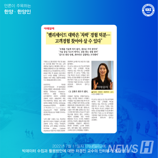 관련기사 [언론 속 한양]2022년 6월 모음 [언론 속 한양]2022년 5월 모음 [언론 속 한양]2022년 4월 모음 [언론 속 한양]2022년 8월 모음 [언론 속 한양]2022년 9월 모음 [언론 속 한양]2022년 10월 모음 키워드 '한양위키' 키워드 보기 #언론 속 한양 한양대 prhyu@hanyang.ac.kr 다른기사 보기 저작권자 © 뉴스H 무단전재 및 재배포 금지 당신만 안 본 뉴스 [포토스토리] "AI 시대 해답은 브랜딩", 오세훈 서울시장의 경영학 특강 현장 Into the Creation 2025, 창작자들의 꿈에 날개를 이찬규 학생, 사이버·우주 융합연구로 2025 사이버안보논문공모전 대상 수상 한양대, '2026 QS 지속가능성 순위' 세계 161위, 국내 4위 기록 해커톤에서 인턴십까지, 현대차 사내 스타트업에 다녀오다 [창업지원단 인턴십 경험기] [포토스토리] 한양 속에 사회혁신을 품다, SSIR 먼슬리 콜로키움 현장 행복은 좋은 경험의 ‘빈도’에서, 서은국 교수와 함께한 한양인의 힐링콘서트 현장 2025 중앙일보 대학평가 서울 3위, ERICA 13위 댓글삭제 삭제한 댓글은 다시 복구할 수 없습니다. 그래도 삭제하시겠습니까? 비밀번호 닫기 기사 댓글 0 댓글 접기 로그인 후 이용 가능합니다. 댓글 내용입력 비회원 로그인 이름 비밀번호 댓글 내용입력 댓글쓰기 계정을 선택하시면 로그인·계정인증을 통해 댓글을 남기실 수 있습니다. 회원 로그인 비회원 글쓰기 이름 비밀번호 자동등록방지 로그인 옵션 창닫기 기획기사 [포토스토리] "AI 시대 해답은 브랜딩", 오세훈 서울시장의 경영학 특강 현장 Into the Creation 2025, 창작자들의 꿈에 날개를 해커톤에서 인턴십까지, 현대차 사내 스타트업에 다녀오다 [창업지원단 인턴십 경험기] [포토스토리] 한양 속에 사회혁신을 품다, SSIR 먼슬리 콜로키움 현장 행복은 좋은 경험의 ‘빈도’에서, 서은국 교수와 함께한 한양인의 힐링콘서트 현장 [카드뉴스] '한양대학교 SDGs? 알고 보니 내 일상 속에 있었다!' 1편