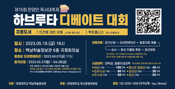 담당 부서 : 학술기획운영팀 게시 기간 : 2023.03.27 ~ 2023.04.09 관련기사 ‘독서는 왜 중요할까?’ 졸업생에게 듣는 독서의 필요성 미디어보드 newsh@hanyang.ac.kr 다른기사 보기 저작권자 © 뉴스H 무단전재 및 재배포 금지 당신만 안 본 뉴스 [포토스토리] "AI 시대 해답은 브랜딩", 오세훈 서울시장의 경영학 특강 현장 Into the Creation 2025, 창작자들의 꿈에 날개를 이찬규 학생, 사이버·우주 융합연구로 2025 사이버안보논문공모전 대상 수상 한양대, '2026 QS 지속가능성 순위' 세계 161위, 국내 4위 기록 해커톤에서 인턴십까지, 현대차 사내 스타트업에 다녀오다 [창업지원단 인턴십 경험기] [포토스토리] 한양 속에 사회혁신을 품다, SSIR 먼슬리 콜로키움 현장 행복은 좋은 경험의 ‘빈도’에서, 서은국 교수와 함께한 한양인의 힐링콘서트 현장 [포토스토리] "AI 시대 해답은 브랜딩", 오세훈 서울시장의 경영학 특강 현장 댓글삭제 삭제한 댓글은 다시 복구할 수 없습니다. 그래도 삭제하시겠습니까? 비밀번호 닫기 기사 댓글 0 댓글 접기 로그인 후 이용 가능합니다. 댓글 내용입력 비회원 로그인 이름 비밀번호 댓글 내용입력 댓글쓰기 계정을 선택하시면 로그인·계정인증을 통해 댓글을 남기실 수 있습니다. 회원 로그인 비회원 글쓰기 이름 비밀번호 자동등록방지 로그인 옵션 창닫기 기획기사 [포토스토리] "AI 시대 해답은 브랜딩", 오세훈 서울시장의 경영학 특강 현장 Into the Creation 2025, 창작자들의 꿈에 날개를 해커톤에서 인턴십까지, 현대차 사내 스타트업에 다녀오다 [창업지원단 인턴십 경험기] [포토스토리] 한양 속에 사회혁신을 품다, SSIR 먼슬리 콜로키움 현장 행복은 좋은 경험의 ‘빈도’에서, 서은국 교수와 함께한 한양인의 힐링콘서트 현장 [카드뉴스] '한양대학교 SDGs? 알고 보니 내 일상 속에 있었다!' 1편