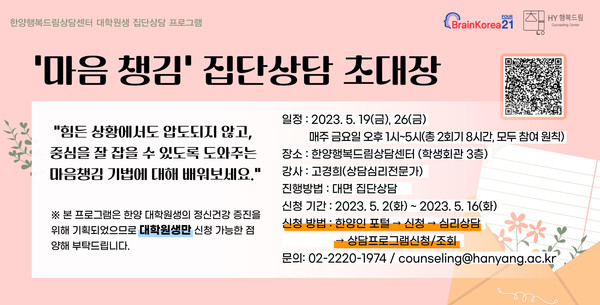 담당 부서 : 창의융합교육원 게시 기간 : 2023.04.11 ~ 2023.04.24 미디어보드 newsh@hanyang.ac.kr 다른기사 보기 저작권자 © 뉴스H 무단전재 및 재배포 금지 당신만 안 본 뉴스 [포토스토리] "AI 시대 해답은 브랜딩", 오세훈 서울시장의 경영학 특강 현장 Into the Creation 2025, 창작자들의 꿈에 날개를 이찬규 학생, 사이버·우주 융합연구로 2025 사이버안보논문공모전 대상 수상 한양대, '2026 QS 지속가능성 순위' 세계 161위, 국내 4위 기록 해커톤에서 인턴십까지, 현대차 사내 스타트업에 다녀오다 [창업지원단 인턴십 경험기] [포토스토리] 한양 속에 사회혁신을 품다, SSIR 먼슬리 콜로키움 현장 행복은 좋은 경험의 ‘빈도’에서, 서은국 교수와 함께한 한양인의 힐링콘서트 현장 [포토스토리] "AI 시대 해답은 브랜딩", 오세훈 서울시장의 경영학 특강 현장 댓글삭제 삭제한 댓글은 다시 복구할 수 없습니다. 그래도 삭제하시겠습니까? 비밀번호 닫기 기사 댓글 0 댓글 접기 로그인 후 이용 가능합니다. 댓글 내용입력 비회원 로그인 이름 비밀번호 댓글 내용입력 댓글쓰기 계정을 선택하시면 로그인·계정인증을 통해 댓글을 남기실 수 있습니다. 회원 로그인 비회원 글쓰기 이름 비밀번호 자동등록방지 로그인 옵션 창닫기 기획기사 [포토스토리] "AI 시대 해답은 브랜딩", 오세훈 서울시장의 경영학 특강 현장 Into the Creation 2025, 창작자들의 꿈에 날개를 해커톤에서 인턴십까지, 현대차 사내 스타트업에 다녀오다 [창업지원단 인턴십 경험기] [포토스토리] 한양 속에 사회혁신을 품다, SSIR 먼슬리 콜로키움 현장 행복은 좋은 경험의 ‘빈도’에서, 서은국 교수와 함께한 한양인의 힐링콘서트 현장 [카드뉴스] '한양대학교 SDGs? 알고 보니 내 일상 속에 있었다!' 1편