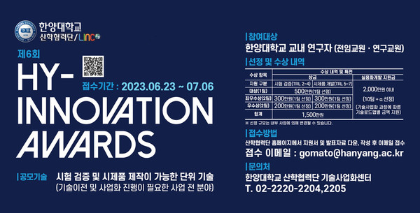 담당 부서 : 기술사업화센터 게시 기간 : 2023.06.23 ~ 2023.07.06 미디어보드 newsh@hanyang.ac.kr 다른기사 보기 저작권자 © 뉴스H 무단전재 및 재배포 금지 당신만 안 본 뉴스 [포토스토리] "AI 시대 해답은 브랜딩", 오세훈 서울시장의 경영학 특강 현장 Into the Creation 2025, 창작자들의 꿈에 날개를 이찬규 학생, 사이버·우주 융합연구로 2025 사이버안보논문공모전 대상 수상 한양대, '2026 QS 지속가능성 순위' 세계 161위, 국내 4위 기록 해커톤에서 인턴십까지, 현대차 사내 스타트업에 다녀오다 [창업지원단 인턴십 경험기] [포토스토리] 한양 속에 사회혁신을 품다, SSIR 먼슬리 콜로키움 현장 행복은 좋은 경험의 ‘빈도’에서, 서은국 교수와 함께한 한양인의 힐링콘서트 현장 [포토스토리] "AI 시대 해답은 브랜딩", 오세훈 서울시장의 경영학 특강 현장 댓글삭제 삭제한 댓글은 다시 복구할 수 없습니다. 그래도 삭제하시겠습니까? 비밀번호 닫기 기사 댓글 0 댓글 접기 로그인 후 이용 가능합니다. 댓글 내용입력 비회원 로그인 이름 비밀번호 댓글 내용입력 댓글쓰기 계정을 선택하시면 로그인·계정인증을 통해 댓글을 남기실 수 있습니다. 회원 로그인 비회원 글쓰기 이름 비밀번호 자동등록방지 로그인 옵션 창닫기 기획기사 [포토스토리] "AI 시대 해답은 브랜딩", 오세훈 서울시장의 경영학 특강 현장 Into the Creation 2025, 창작자들의 꿈에 날개를 해커톤에서 인턴십까지, 현대차 사내 스타트업에 다녀오다 [창업지원단 인턴십 경험기] [포토스토리] 한양 속에 사회혁신을 품다, SSIR 먼슬리 콜로키움 현장 행복은 좋은 경험의 ‘빈도’에서, 서은국 교수와 함께한 한양인의 힐링콘서트 현장 [카드뉴스] '한양대학교 SDGs? 알고 보니 내 일상 속에 있었다!' 1편
