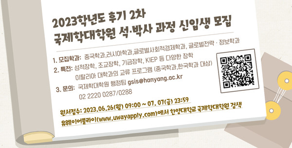 담당 부서 : 국제학부 RC 행정팀 게시 기간 : 2023.06.27 ~ 2023.07.07 미디어보드 newsh@hanyang.ac.kr 다른기사 보기 저작권자 © 뉴스H 무단전재 및 재배포 금지 당신만 안 본 뉴스 [포토스토리] "AI 시대 해답은 브랜딩", 오세훈 서울시장의 경영학 특강 현장 Into the Creation 2025, 창작자들의 꿈에 날개를 이찬규 학생, 사이버·우주 융합연구로 2025 사이버안보논문공모전 대상 수상 한양대, '2026 QS 지속가능성 순위' 세계 161위, 국내 4위 기록 해커톤에서 인턴십까지, 현대차 사내 스타트업에 다녀오다 [창업지원단 인턴십 경험기] [포토스토리] 한양 속에 사회혁신을 품다, SSIR 먼슬리 콜로키움 현장 행복은 좋은 경험의 ‘빈도’에서, 서은국 교수와 함께한 한양인의 힐링콘서트 현장 [포토스토리] "AI 시대 해답은 브랜딩", 오세훈 서울시장의 경영학 특강 현장 댓글삭제 삭제한 댓글은 다시 복구할 수 없습니다. 그래도 삭제하시겠습니까? 비밀번호 닫기 기사 댓글 0 댓글 접기 로그인 후 이용 가능합니다. 댓글 내용입력 비회원 로그인 이름 비밀번호 댓글 내용입력 댓글쓰기 계정을 선택하시면 로그인·계정인증을 통해 댓글을 남기실 수 있습니다. 회원 로그인 비회원 글쓰기 이름 비밀번호 자동등록방지 로그인 옵션 창닫기 기획기사 [포토스토리] "AI 시대 해답은 브랜딩", 오세훈 서울시장의 경영학 특강 현장 Into the Creation 2025, 창작자들의 꿈에 날개를 해커톤에서 인턴십까지, 현대차 사내 스타트업에 다녀오다 [창업지원단 인턴십 경험기] [포토스토리] 한양 속에 사회혁신을 품다, SSIR 먼슬리 콜로키움 현장 행복은 좋은 경험의 ‘빈도’에서, 서은국 교수와 함께한 한양인의 힐링콘서트 현장 [카드뉴스] '한양대학교 SDGs? 알고 보니 내 일상 속에 있었다!' 1편