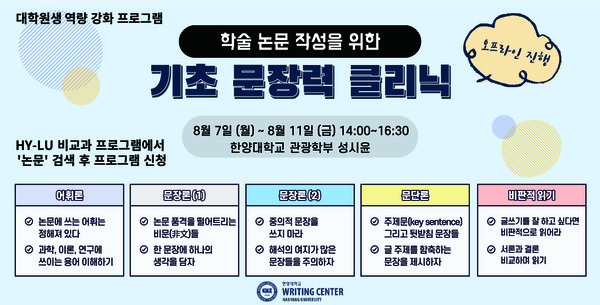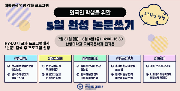 담당 부서 : WRITING CENTER 게시 기간 : 2023.07.07 ~ 2023.07.20 미디어보드 newsh@hanyang.ac.kr 다른기사 보기 저작권자 © 뉴스H 무단전재 및 재배포 금지 당신만 안 본 뉴스 [포토스토리] "AI 시대 해답은 브랜딩", 오세훈 서울시장의 경영학 특강 현장 Into the Creation 2025, 창작자들의 꿈에 날개를 이찬규 학생, 사이버·우주 융합연구로 2025 사이버안보논문공모전 대상 수상 한양대, '2026 QS 지속가능성 순위' 세계 161위, 국내 4위 기록 해커톤에서 인턴십까지, 현대차 사내 스타트업에 다녀오다 [창업지원단 인턴십 경험기] [포토스토리] 한양 속에 사회혁신을 품다, SSIR 먼슬리 콜로키움 현장 행복은 좋은 경험의 ‘빈도’에서, 서은국 교수와 함께한 한양인의 힐링콘서트 현장 [포토스토리] "AI 시대 해답은 브랜딩", 오세훈 서울시장의 경영학 특강 현장 댓글삭제 삭제한 댓글은 다시 복구할 수 없습니다. 그래도 삭제하시겠습니까? 비밀번호 닫기 기사 댓글 0 댓글 접기 로그인 후 이용 가능합니다. 댓글 내용입력 비회원 로그인 이름 비밀번호 댓글 내용입력 댓글쓰기 계정을 선택하시면 로그인·계정인증을 통해 댓글을 남기실 수 있습니다. 회원 로그인 비회원 글쓰기 이름 비밀번호 자동등록방지 로그인 옵션 창닫기 기획기사 [포토스토리] "AI 시대 해답은 브랜딩", 오세훈 서울시장의 경영학 특강 현장 Into the Creation 2025, 창작자들의 꿈에 날개를 해커톤에서 인턴십까지, 현대차 사내 스타트업에 다녀오다 [창업지원단 인턴십 경험기] [포토스토리] 한양 속에 사회혁신을 품다, SSIR 먼슬리 콜로키움 현장 행복은 좋은 경험의 ‘빈도’에서, 서은국 교수와 함께한 한양인의 힐링콘서트 현장 [카드뉴스] '한양대학교 SDGs? 알고 보니 내 일상 속에 있었다!' 1편