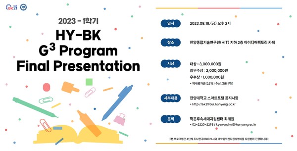 담당 부서 : 학문후속세대지원센터 게시 기간 : 2023.07.24 ~ 2023.08.06 미디어보드 newsh@hanyang.ac.kr 다른기사 보기 저작권자 © 뉴스H 무단전재 및 재배포 금지 당신만 안 본 뉴스 [포토스토리] "AI 시대 해답은 브랜딩", 오세훈 서울시장의 경영학 특강 현장 Into the Creation 2025, 창작자들의 꿈에 날개를 이찬규 학생, 사이버·우주 융합연구로 2025 사이버안보논문공모전 대상 수상 한양대, '2026 QS 지속가능성 순위' 세계 161위, 국내 4위 기록 해커톤에서 인턴십까지, 현대차 사내 스타트업에 다녀오다 [창업지원단 인턴십 경험기] [포토스토리] 한양 속에 사회혁신을 품다, SSIR 먼슬리 콜로키움 현장 행복은 좋은 경험의 ‘빈도’에서, 서은국 교수와 함께한 한양인의 힐링콘서트 현장 [포토스토리] "AI 시대 해답은 브랜딩", 오세훈 서울시장의 경영학 특강 현장 댓글삭제 삭제한 댓글은 다시 복구할 수 없습니다. 그래도 삭제하시겠습니까? 비밀번호 닫기 기사 댓글 0 댓글 접기 로그인 후 이용 가능합니다. 댓글 내용입력 비회원 로그인 이름 비밀번호 댓글 내용입력 댓글쓰기 계정을 선택하시면 로그인·계정인증을 통해 댓글을 남기실 수 있습니다. 회원 로그인 비회원 글쓰기 이름 비밀번호 자동등록방지 로그인 옵션 창닫기 기획기사 [포토스토리] "AI 시대 해답은 브랜딩", 오세훈 서울시장의 경영학 특강 현장 Into the Creation 2025, 창작자들의 꿈에 날개를 해커톤에서 인턴십까지, 현대차 사내 스타트업에 다녀오다 [창업지원단 인턴십 경험기] [포토스토리] 한양 속에 사회혁신을 품다, SSIR 먼슬리 콜로키움 현장 행복은 좋은 경험의 ‘빈도’에서, 서은국 교수와 함께한 한양인의 힐링콘서트 현장 [카드뉴스] '한양대학교 SDGs? 알고 보니 내 일상 속에 있었다!' 1편