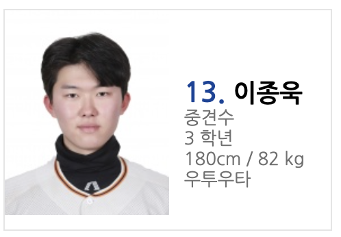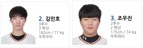 지금 저희 팀에서 올해 3루를 보고 있는 김민호 선수(스포츠과학부·21)가 가장 능력치도 좋고, 파워도 있고, 어깨도 굉장히 좋은 친구여가지고 추천 드리고 싶고요. 또 지금 2학년인 조우진 선수(스포츠과학부·22), 수비도 안정적으로 잘 하고 체형이 작은 편인데, 그래도 발도 빠르고 컨택력이 진짜 좋아요. 얘는 뭐 저렇게 치냐 라는 말이 나올 정도로 좋은 선수인 것 같습니다.
