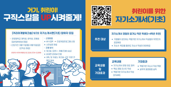 담당 부서 : 커리어개발팀 게시 기간 : 2023.09.11 ~ 2023.09.15 미디어보드 newsh@hanyang.ac.kr 다른기사 보기 저작권자 © 뉴스H 무단전재 및 재배포 금지 당신만 안 본 뉴스 [포토스토리] "AI 시대 해답은 브랜딩", 오세훈 서울시장의 경영학 특강 현장 Into the Creation 2025, 창작자들의 꿈에 날개를 이찬규 학생, 사이버·우주 융합연구로 2025 사이버안보논문공모전 대상 수상 한양대, '2026 QS 지속가능성 순위' 세계 161위, 국내 4위 기록 해커톤에서 인턴십까지, 현대차 사내 스타트업에 다녀오다 [창업지원단 인턴십 경험기] [포토스토리] 한양 속에 사회혁신을 품다, SSIR 먼슬리 콜로키움 현장 행복은 좋은 경험의 ‘빈도’에서, 서은국 교수와 함께한 한양인의 힐링콘서트 현장 [포토스토리] "AI 시대 해답은 브랜딩", 오세훈 서울시장의 경영학 특강 현장 댓글삭제 삭제한 댓글은 다시 복구할 수 없습니다. 그래도 삭제하시겠습니까? 비밀번호 닫기 기사 댓글 0 댓글 접기 로그인 후 이용 가능합니다. 댓글 내용입력 비회원 로그인 이름 비밀번호 댓글 내용입력 댓글쓰기 계정을 선택하시면 로그인·계정인증을 통해 댓글을 남기실 수 있습니다. 회원 로그인 비회원 글쓰기 이름 비밀번호 자동등록방지 로그인 옵션 창닫기 기획기사 [포토스토리] "AI 시대 해답은 브랜딩", 오세훈 서울시장의 경영학 특강 현장 Into the Creation 2025, 창작자들의 꿈에 날개를 해커톤에서 인턴십까지, 현대차 사내 스타트업에 다녀오다 [창업지원단 인턴십 경험기] [포토스토리] 한양 속에 사회혁신을 품다, SSIR 먼슬리 콜로키움 현장 행복은 좋은 경험의 ‘빈도’에서, 서은국 교수와 함께한 한양인의 힐링콘서트 현장 [카드뉴스] '한양대학교 SDGs? 알고 보니 내 일상 속에 있었다!' 1편