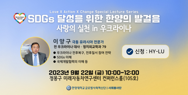 담당 부서 : 글로벌사회혁신팀 게시 기간 : 2023.09.20 ~ 2023.09.22 미디어보드 newsh@hanyang.ac.kr 다른기사 보기 저작권자 © 뉴스H 무단전재 및 재배포 금지 당신만 안 본 뉴스 [포토스토리] "AI 시대 해답은 브랜딩", 오세훈 서울시장의 경영학 특강 현장 Into the Creation 2025, 창작자들의 꿈에 날개를 이찬규 학생, 사이버·우주 융합연구로 2025 사이버안보논문공모전 대상 수상 한양대, '2026 QS 지속가능성 순위' 세계 161위, 국내 4위 기록 해커톤에서 인턴십까지, 현대차 사내 스타트업에 다녀오다 [창업지원단 인턴십 경험기] [포토스토리] 한양 속에 사회혁신을 품다, SSIR 먼슬리 콜로키움 현장 행복은 좋은 경험의 ‘빈도’에서, 서은국 교수와 함께한 한양인의 힐링콘서트 현장 [포토스토리] "AI 시대 해답은 브랜딩", 오세훈 서울시장의 경영학 특강 현장 댓글삭제 삭제한 댓글은 다시 복구할 수 없습니다. 그래도 삭제하시겠습니까? 비밀번호 닫기 기사 댓글 0 댓글 접기 로그인 후 이용 가능합니다. 댓글 내용입력 비회원 로그인 이름 비밀번호 댓글 내용입력 댓글쓰기 계정을 선택하시면 로그인·계정인증을 통해 댓글을 남기실 수 있습니다. 회원 로그인 비회원 글쓰기 이름 비밀번호 자동등록방지 로그인 옵션 창닫기 기획기사 [포토스토리] "AI 시대 해답은 브랜딩", 오세훈 서울시장의 경영학 특강 현장 Into the Creation 2025, 창작자들의 꿈에 날개를 해커톤에서 인턴십까지, 현대차 사내 스타트업에 다녀오다 [창업지원단 인턴십 경험기] [포토스토리] 한양 속에 사회혁신을 품다, SSIR 먼슬리 콜로키움 현장 행복은 좋은 경험의 ‘빈도’에서, 서은국 교수와 함께한 한양인의 힐링콘서트 현장 [카드뉴스] '한양대학교 SDGs? 알고 보니 내 일상 속에 있었다!' 1편
