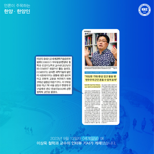 키워드 '한양위키' 키워드 보기 #SDG3 #SDG4 #SDG11 #SDG9 #SDG7 #SDG10 #SDG8 #SDG17 #SDG16 한양대 prhyu@hanyang.ac.kr 다른기사 보기 저작권자 © 뉴스H 무단전재 및 재배포 금지 당신만 안 본 뉴스 [포토스토리] "AI 시대 해답은 브랜딩", 오세훈 서울시장의 경영학 특강 현장 Into the Creation 2025, 창작자들의 꿈에 날개를 이찬규 학생, 사이버·우주 융합연구로 2025 사이버안보논문공모전 대상 수상 한양대, '2026 QS 지속가능성 순위' 세계 161위, 국내 4위 기록 해커톤에서 인턴십까지, 현대차 사내 스타트업에 다녀오다 [창업지원단 인턴십 경험기] [포토스토리] 한양 속에 사회혁신을 품다, SSIR 먼슬리 콜로키움 현장 행복은 좋은 경험의 ‘빈도’에서, 서은국 교수와 함께한 한양인의 힐링콘서트 현장 2025 중앙일보 대학평가 서울 3위, ERICA 13위 댓글삭제 삭제한 댓글은 다시 복구할 수 없습니다. 그래도 삭제하시겠습니까? 비밀번호 닫기 기사 댓글 0 댓글 접기 로그인 후 이용 가능합니다. 댓글 내용입력 비회원 로그인 이름 비밀번호 댓글 내용입력 댓글쓰기 계정을 선택하시면 로그인·계정인증을 통해 댓글을 남기실 수 있습니다. 회원 로그인 비회원 글쓰기 이름 비밀번호 자동등록방지 로그인 옵션 창닫기 기획기사 [포토스토리] "AI 시대 해답은 브랜딩", 오세훈 서울시장의 경영학 특강 현장 Into the Creation 2025, 창작자들의 꿈에 날개를 해커톤에서 인턴십까지, 현대차 사내 스타트업에 다녀오다 [창업지원단 인턴십 경험기] [포토스토리] 한양 속에 사회혁신을 품다, SSIR 먼슬리 콜로키움 현장 행복은 좋은 경험의 ‘빈도’에서, 서은국 교수와 함께한 한양인의 힐링콘서트 현장 [카드뉴스] '한양대학교 SDGs? 알고 보니 내 일상 속에 있었다!' 1편