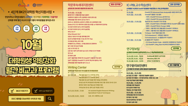 담당 부서 : 학문후속세대지원센터 게시 기간 : 2023.10.04 ~ 2023.10.17 미디어보드 newsh@hanyang.ac.kr 다른기사 보기 저작권자 © 뉴스H 무단전재 및 재배포 금지 당신만 안 본 뉴스 [포토스토리] "AI 시대 해답은 브랜딩", 오세훈 서울시장의 경영학 특강 현장 Into the Creation 2025, 창작자들의 꿈에 날개를 이찬규 학생, 사이버·우주 융합연구로 2025 사이버안보논문공모전 대상 수상 한양대, '2026 QS 지속가능성 순위' 세계 161위, 국내 4위 기록 해커톤에서 인턴십까지, 현대차 사내 스타트업에 다녀오다 [창업지원단 인턴십 경험기] [포토스토리] 한양 속에 사회혁신을 품다, SSIR 먼슬리 콜로키움 현장 행복은 좋은 경험의 ‘빈도’에서, 서은국 교수와 함께한 한양인의 힐링콘서트 현장 [포토스토리] "AI 시대 해답은 브랜딩", 오세훈 서울시장의 경영학 특강 현장 댓글삭제 삭제한 댓글은 다시 복구할 수 없습니다. 그래도 삭제하시겠습니까? 비밀번호 닫기 기사 댓글 0 댓글 접기 로그인 후 이용 가능합니다. 댓글 내용입력 비회원 로그인 이름 비밀번호 댓글 내용입력 댓글쓰기 계정을 선택하시면 로그인·계정인증을 통해 댓글을 남기실 수 있습니다. 회원 로그인 비회원 글쓰기 이름 비밀번호 자동등록방지 로그인 옵션 창닫기 기획기사 [포토스토리] "AI 시대 해답은 브랜딩", 오세훈 서울시장의 경영학 특강 현장 Into the Creation 2025, 창작자들의 꿈에 날개를 해커톤에서 인턴십까지, 현대차 사내 스타트업에 다녀오다 [창업지원단 인턴십 경험기] [포토스토리] 한양 속에 사회혁신을 품다, SSIR 먼슬리 콜로키움 현장 행복은 좋은 경험의 ‘빈도’에서, 서은국 교수와 함께한 한양인의 힐링콘서트 현장 [카드뉴스] '한양대학교 SDGs? 알고 보니 내 일상 속에 있었다!' 1편