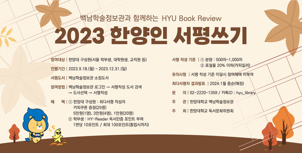 담당 부서 : 학술기획운영팀 게시 기간 : 2023.10.04 ~ 2023.10.17 미디어보드 newsh@hanyang.ac.kr 다른기사 보기 저작권자 © 뉴스H 무단전재 및 재배포 금지 당신만 안 본 뉴스 [포토스토리] "AI 시대 해답은 브랜딩", 오세훈 서울시장의 경영학 특강 현장 Into the Creation 2025, 창작자들의 꿈에 날개를 이찬규 학생, 사이버·우주 융합연구로 2025 사이버안보논문공모전 대상 수상 한양대, '2026 QS 지속가능성 순위' 세계 161위, 국내 4위 기록 해커톤에서 인턴십까지, 현대차 사내 스타트업에 다녀오다 [창업지원단 인턴십 경험기] [포토스토리] 한양 속에 사회혁신을 품다, SSIR 먼슬리 콜로키움 현장 행복은 좋은 경험의 ‘빈도’에서, 서은국 교수와 함께한 한양인의 힐링콘서트 현장 2025 중앙일보 대학평가 서울 3위, ERICA 13위 댓글삭제 삭제한 댓글은 다시 복구할 수 없습니다. 그래도 삭제하시겠습니까? 비밀번호 닫기 기사 댓글 0 댓글 접기 로그인 후 이용 가능합니다. 댓글 내용입력 비회원 로그인 이름 비밀번호 댓글 내용입력 댓글쓰기 계정을 선택하시면 로그인·계정인증을 통해 댓글을 남기실 수 있습니다. 회원 로그인 비회원 글쓰기 이름 비밀번호 자동등록방지 로그인 옵션 창닫기 기획기사 [포토스토리] "AI 시대 해답은 브랜딩", 오세훈 서울시장의 경영학 특강 현장 Into the Creation 2025, 창작자들의 꿈에 날개를 해커톤에서 인턴십까지, 현대차 사내 스타트업에 다녀오다 [창업지원단 인턴십 경험기] [포토스토리] 한양 속에 사회혁신을 품다, SSIR 먼슬리 콜로키움 현장 행복은 좋은 경험의 ‘빈도’에서, 서은국 교수와 함께한 한양인의 힐링콘서트 현장 [카드뉴스] '한양대학교 SDGs? 알고 보니 내 일상 속에 있었다!' 1편