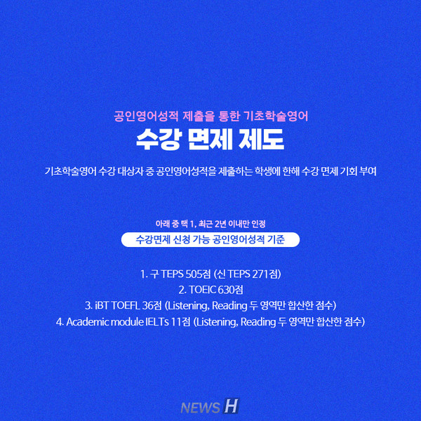 한양대 서울캠퍼스는 신입생을 대상으로 영어기초학력평가를 실시하고 있다. 대학영어 수준별 수업을 위한 반 편성 자료를 자료를 마련하고 기초 학습이 필요한 학생을 지원하기 위함이다. 한양인 자격으로 이뤄지는 첫 번째 평가인 영어기초학력평가의 정보를 미리 확인하고, 시험을 차근차근 준비해 보자.