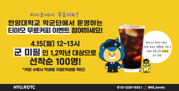 담당 부서 : 학군단 게시 기간 : 2024.04.11 ~ 2024.04.15 미디어보드 newsh@hanyang.ac.kr 다른기사 보기 저작권자 © 뉴스H 무단전재 및 재배포 금지 당신만 안 본 뉴스 [포토스토리] "AI 시대 해답은 브랜딩", 오세훈 서울시장의 경영학 특강 현장 Into the Creation 2025, 창작자들의 꿈에 날개를 이찬규 학생, 사이버·우주 융합연구로 2025 사이버안보논문공모전 대상 수상 한양대, '2026 QS 지속가능성 순위' 세계 161위, 국내 4위 기록 해커톤에서 인턴십까지, 현대차 사내 스타트업에 다녀오다 [창업지원단 인턴십 경험기] [포토스토리] 한양 속에 사회혁신을 품다, SSIR 먼슬리 콜로키움 현장 행복은 좋은 경험의 ‘빈도’에서, 서은국 교수와 함께한 한양인의 힐링콘서트 현장 2025 중앙일보 대학평가 서울 3위, ERICA 13위 댓글삭제 삭제한 댓글은 다시 복구할 수 없습니다. 그래도 삭제하시겠습니까? 비밀번호 닫기 기사 댓글 0 댓글 접기 로그인 후 이용 가능합니다. 댓글 내용입력 비회원 로그인 이름 비밀번호 댓글 내용입력 댓글쓰기 계정을 선택하시면 로그인·계정인증을 통해 댓글을 남기실 수 있습니다. 회원 로그인 비회원 글쓰기 이름 비밀번호 자동등록방지 로그인 옵션 창닫기 기획기사 [포토스토리] "AI 시대 해답은 브랜딩", 오세훈 서울시장의 경영학 특강 현장 Into the Creation 2025, 창작자들의 꿈에 날개를 해커톤에서 인턴십까지, 현대차 사내 스타트업에 다녀오다 [창업지원단 인턴십 경험기] [포토스토리] 한양 속에 사회혁신을 품다, SSIR 먼슬리 콜로키움 현장 행복은 좋은 경험의 ‘빈도’에서, 서은국 교수와 함께한 한양인의 힐링콘서트 현장 [카드뉴스] '한양대학교 SDGs? 알고 보니 내 일상 속에 있었다!' 1편