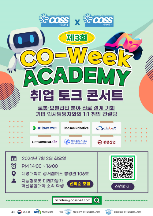 이번 행사는 7월 1일부터 5일까지 열리는 제3회 코-위크 아카데미(CO-Week Academy) 부대행사 중 하나로, 작년 해커톤에 이어 지능형로봇 혁신융합대학과 미래자동차 혁신융합대학이 공동 협력사업으로 진행한다.