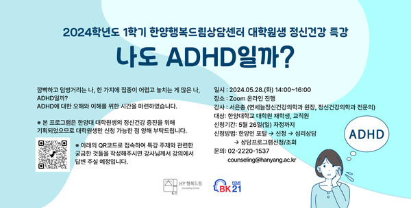 담당 부서 : 한양행복드림상담센터 게시 기간 : 2024.05.13 ~ 2024.05.26 미디어보드 newsh@hanyang.ac.kr 다른기사 보기 저작권자 © 뉴스H 무단전재 및 재배포 금지 당신만 안 본 뉴스 [포토스토리] "AI 시대 해답은 브랜딩", 오세훈 서울시장의 경영학 특강 현장 Into the Creation 2025, 창작자들의 꿈에 날개를 이찬규 학생, 사이버·우주 융합연구로 2025 사이버안보논문공모전 대상 수상 한양대, '2026 QS 지속가능성 순위' 세계 161위, 국내 4위 기록 해커톤에서 인턴십까지, 현대차 사내 스타트업에 다녀오다 [창업지원단 인턴십 경험기] [포토스토리] 한양 속에 사회혁신을 품다, SSIR 먼슬리 콜로키움 현장 행복은 좋은 경험의 ‘빈도’에서, 서은국 교수와 함께한 한양인의 힐링콘서트 현장 [포토스토리] "AI 시대 해답은 브랜딩", 오세훈 서울시장의 경영학 특강 현장 댓글삭제 삭제한 댓글은 다시 복구할 수 없습니다. 그래도 삭제하시겠습니까? 비밀번호 닫기 기사 댓글 0 댓글 접기 로그인 후 이용 가능합니다. 댓글 내용입력 비회원 로그인 이름 비밀번호 댓글 내용입력 댓글쓰기 계정을 선택하시면 로그인·계정인증을 통해 댓글을 남기실 수 있습니다. 회원 로그인 비회원 글쓰기 이름 비밀번호 자동등록방지 로그인 옵션 창닫기 기획기사 [포토스토리] "AI 시대 해답은 브랜딩", 오세훈 서울시장의 경영학 특강 현장 Into the Creation 2025, 창작자들의 꿈에 날개를 해커톤에서 인턴십까지, 현대차 사내 스타트업에 다녀오다 [창업지원단 인턴십 경험기] [포토스토리] 한양 속에 사회혁신을 품다, SSIR 먼슬리 콜로키움 현장 행복은 좋은 경험의 ‘빈도’에서, 서은국 교수와 함께한 한양인의 힐링콘서트 현장 [카드뉴스] '한양대학교 SDGs? 알고 보니 내 일상 속에 있었다!' 1편