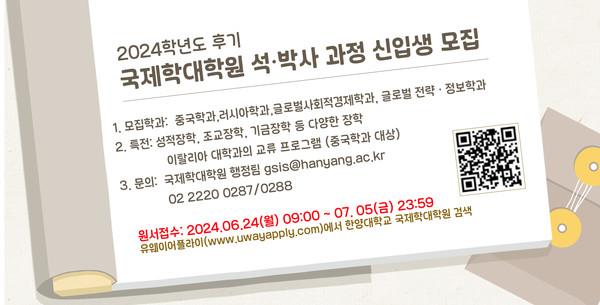 담당 부서 : 국제학부 RC 행정팀 게시 기간 : 2024.06.22 ~ 2024.07.05 미디어보드 newsh@hanyang.ac.kr 다른기사 보기 저작권자 © 뉴스H 무단전재 및 재배포 금지 당신만 안 본 뉴스 [포토스토리] "AI 시대 해답은 브랜딩", 오세훈 서울시장의 경영학 특강 현장 Into the Creation 2025, 창작자들의 꿈에 날개를 이찬규 학생, 사이버·우주 융합연구로 2025 사이버안보논문공모전 대상 수상 한양대, '2026 QS 지속가능성 순위' 세계 161위, 국내 4위 기록 해커톤에서 인턴십까지, 현대차 사내 스타트업에 다녀오다 [창업지원단 인턴십 경험기] [포토스토리] 한양 속에 사회혁신을 품다, SSIR 먼슬리 콜로키움 현장 행복은 좋은 경험의 ‘빈도’에서, 서은국 교수와 함께한 한양인의 힐링콘서트 현장 2025 중앙일보 대학평가 서울 3위, ERICA 13위 댓글삭제 삭제한 댓글은 다시 복구할 수 없습니다. 그래도 삭제하시겠습니까? 비밀번호 닫기 기사 댓글 0 댓글 접기 로그인 후 이용 가능합니다. 댓글 내용입력 비회원 로그인 이름 비밀번호 댓글 내용입력 댓글쓰기 계정을 선택하시면 로그인·계정인증을 통해 댓글을 남기실 수 있습니다. 회원 로그인 비회원 글쓰기 이름 비밀번호 자동등록방지 로그인 옵션 창닫기 기획기사 [포토스토리] "AI 시대 해답은 브랜딩", 오세훈 서울시장의 경영학 특강 현장 Into the Creation 2025, 창작자들의 꿈에 날개를 해커톤에서 인턴십까지, 현대차 사내 스타트업에 다녀오다 [창업지원단 인턴십 경험기] [포토스토리] 한양 속에 사회혁신을 품다, SSIR 먼슬리 콜로키움 현장 행복은 좋은 경험의 ‘빈도’에서, 서은국 교수와 함께한 한양인의 힐링콘서트 현장 [카드뉴스] '한양대학교 SDGs? 알고 보니 내 일상 속에 있었다!' 1편