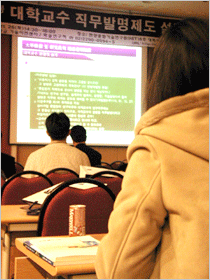 오후 2시 30분부터 시작된 설명회는 대학교수 및 연구원의 특허출원 및 특허권 관리에 대한 비디오 상영으로 시작됐다. 비디오 상영 후 '대학 및 연구원 직무발명제도와 기술이전 성공사례'라는 제목으로 특허청 이재우 서기관의 발표가 진행됐다. 2시간 동안 진행된 프리젠테이션을 통해 이 서기관은 특허제도의 정확한 이해, 직무발명의 중요성에 대해 설명하며 대학 내 지원시설을 활용한 효율적인 특허 취득 요령을 강조했다. 또한 해당 연구의 자금 지원 출처에 따라 특허의 소유권과 실시권이 달라지므로 법적 해석에도 신중한 주의를 기울일 것을 강조했다. 설명회의 마지막 순서는 기술이전센터 지원실장인 윤선희(법대·법학) 교수의 '기술이전 전담조직의 특허관리 및 절차'에 대한 설명이 이어졌다. 윤 교수는 먼저 본교 기술이전센터의 장점을 소개했다. 이어 센터를 이용할 경우, 특허 등록에 따르는 시간 및 비용 절감 효과가 있음을 강조하며, 효율적인 특허관리와 특허개발자의 이익증대를 위해 센터의 적극적인 활용을 당부했다.