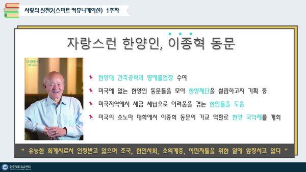 담당 부서 : 리더십센터 게시 기간 : 2024.07.29 ~ 2024.08.04 미디어보드 newsh@hanyang.ac.kr 다른기사 보기 저작권자 © 뉴스H 무단전재 및 재배포 금지 당신만 안 본 뉴스 [포토스토리] "AI 시대 해답은 브랜딩", 오세훈 서울시장의 경영학 특강 현장 Into the Creation 2025, 창작자들의 꿈에 날개를 이찬규 학생, 사이버·우주 융합연구로 2025 사이버안보논문공모전 대상 수상 한양대, '2026 QS 지속가능성 순위' 세계 161위, 국내 4위 기록 해커톤에서 인턴십까지, 현대차 사내 스타트업에 다녀오다 [창업지원단 인턴십 경험기] [포토스토리] 한양 속에 사회혁신을 품다, SSIR 먼슬리 콜로키움 현장 행복은 좋은 경험의 ‘빈도’에서, 서은국 교수와 함께한 한양인의 힐링콘서트 현장 2025 중앙일보 대학평가 서울 3위, ERICA 13위 댓글삭제 삭제한 댓글은 다시 복구할 수 없습니다. 그래도 삭제하시겠습니까? 비밀번호 닫기 기사 댓글 0 댓글 접기 로그인 후 이용 가능합니다. 댓글 내용입력 비회원 로그인 이름 비밀번호 댓글 내용입력 댓글쓰기 계정을 선택하시면 로그인·계정인증을 통해 댓글을 남기실 수 있습니다. 회원 로그인 비회원 글쓰기 이름 비밀번호 자동등록방지 로그인 옵션 창닫기 기획기사 [포토스토리] "AI 시대 해답은 브랜딩", 오세훈 서울시장의 경영학 특강 현장 Into the Creation 2025, 창작자들의 꿈에 날개를 해커톤에서 인턴십까지, 현대차 사내 스타트업에 다녀오다 [창업지원단 인턴십 경험기] [포토스토리] 한양 속에 사회혁신을 품다, SSIR 먼슬리 콜로키움 현장 행복은 좋은 경험의 ‘빈도’에서, 서은국 교수와 함께한 한양인의 힐링콘서트 현장 [카드뉴스] '한양대학교 SDGs? 알고 보니 내 일상 속에 있었다!' 1편