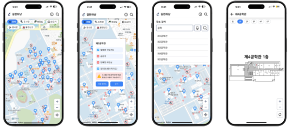 특히 이번 활동의 성과는 단순한 지도를 넘어 한 단계 발전한 앱 형태로 구현됐다. 컴퓨터학부와 경영학부 소속 학부생 3명(이재형, 정윤성, 임동섭)은 학생들이 제작한 배리어 프리 맵 기반 웹앱 형태 '길편하냥'을 개발했다. 이 앱은 Android와 iOS 등 다양한 플랫폼에서 설치 가능하며, 사용자 주변의 배리어 프리 시설 정보를 실시간으로 확인할 수 있다. 주요 기능으로는 △장애인 주차장 및 화장실 위치 조회 △건물 구조도 열람 △장소 음성 검색 △특이사항 정보 제공 등이 포함된다.