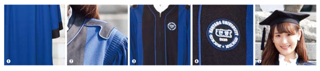 이번 2011학년도 전기 학위수여식에서부터 활용된 이 학위복은 한양대만의 정체성을 담았다는 것이 핵심이다. 즉 디자인에 한양의 UI가 녹아있다는 이야기다. 색상부터가 푸르다. 바로 학교의 교색을 반영한 것이다. 이 정도는 이미 타 대학에서도 하는 것. 하지만 어깨와 전면부로 흘러내리는 ‘HY’라는 텍스트 이니셜은 차원이 다른 특별함을 부여한다. 왼쪽 가슴에 동그랗고 선명한 학교의 로고가 완성의 정점을 찍어준다. 너무 화려해서도 그렇다고 너무 뻔해서도 안 되는 학위복의 균형을 잡기 위해 노력한 흔적이 역력하다. 한양의 역사와 함께 꽤 오랜 시간을 함께할 학위복의 신선함이 식상함으로 가지 않도록 하는 것은 디자이너의 가장 큰 고민이었다고 한다. 우리 대학 동문이 디자인했기에 더욱더 큰 의미와 가치를 지니는 학위복에 대한 이야기를 직접 들어보자.