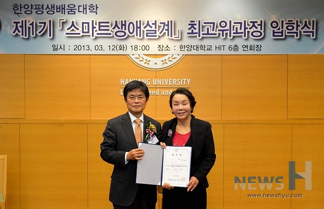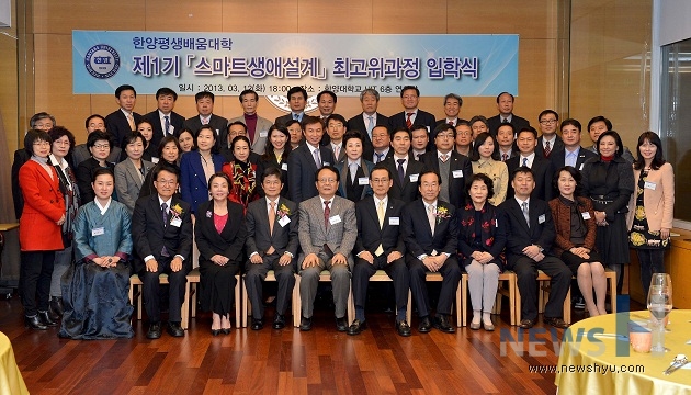 한양대 고령사회연구원(원장 김윤신)은 12일 오후 5시 30분 교내 HIT에서 한양평생대학 ‘스마트생애설계’ 제1기 최고위과정 입학식을 거행했다.