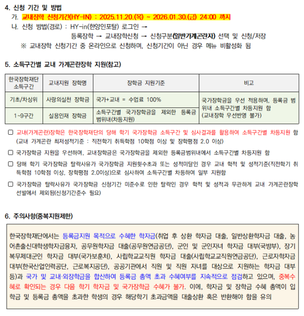 신청 기간은 2025년 11월 20일부터 2026년 1월 30일까지다. HY-in 포털을 통해 온라인으로 진행된다.