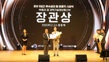 한양대학교 융합전자공학부 장준혁 교수가 12월 3일 서울 삼성동 COEX에서 열린 과학기술정보통신부 주관 「2025년도 SW R&D 우수성과 시상식」에서 부총리 겸 과학기술정보통신장관상을 수상했다고 밝혔다.