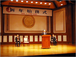 지난 2일 오전 10시, 서울캠퍼스 백남음악관에서는 김종량 총장과 교직원들이 참석한 가운데 2003학년도 시무식을 갖고 서울과 안산 양 캠퍼스의 새해 첫 업무를 시작했다. 국민의례를 시작으로 김종량 총장의 신년사와 유창기 목사의 신년 예배로 이어진 시무식에는 300여 교직원 및 교수들이 참석해 '질적 성숙을 통한 새로운 한양 발전'의 의지를 다졌다.