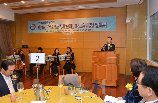 한양대 고령사회연구원(원장 김윤신)은 12일 오후 5시 30분 교내 HIT에서 한양평생대학 ‘스마트생애설계’ 제1기 최고위과정 입학식을 거행했다. 특히 탤런트 김수미씨가 홍보대사로 위촉돼 활발한 홍보활동을 할 예정이다.