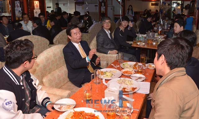한양대학교는 학생들과의 소통을 강화하고자 총장이 직접 학생들을 만나는 'Hanyang, Hope, Hof day with President' 행사를 29일 대학 근처 호프집에서 개최하였다.