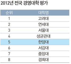 대기업 인사 담당자들이 직접 평가하는 한경비즈니스의 ‘2012년 전국 경영대학 평가’에서 우리 대학이 5위를 차지했다.