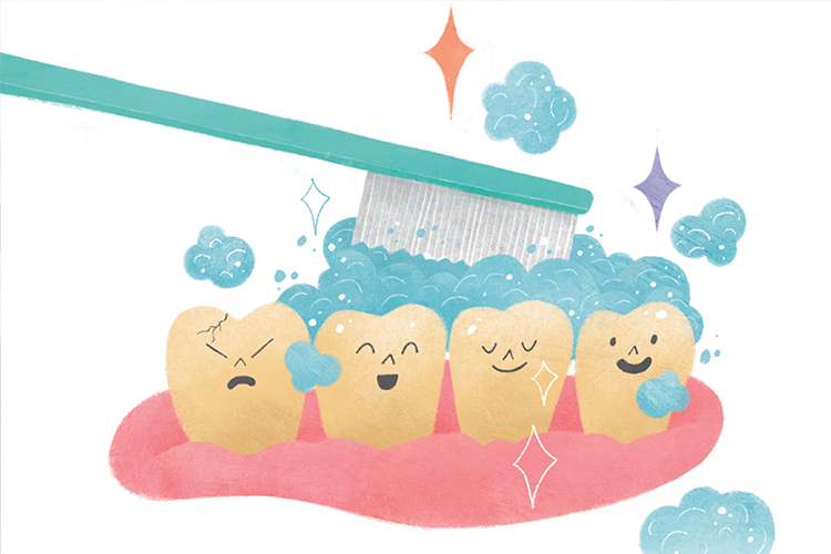 충치와 풍치를 예방하는 가장 좋은 방법은 올바른 칫솔질을 배워 깨끗한 구강 상태를 유지하는 것이다. 프라그란 치아에 끈적끈적하게 붙어 있는 거의 무색의 얇은 막으로, 이 프라그가 충치와 잇몸병의 주원인이다.글. 황경균 교수(한양대학교병원 치과) / 그림. 안우정