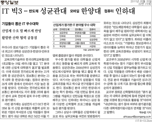 조선일보 ? QS발표 ‘2011 아시아대학평가’, 한양대 5단계 상승해 종합 44위, 국내 8위