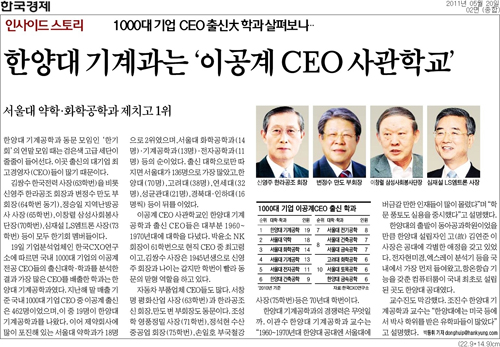 한양대 기계공학과, 이공계 CEO 배출 1위