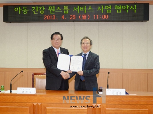 한양대학교병원은 29일 성동구청에서 ‘아동 건강 원스톱 서비스 사업’을 위한 업무협약을 체결했다. 한양대학교병원은 성동구청과 함께 성동구 관내 저소득층 아동들의 건강한 성장을 위해서 상호협력한다.